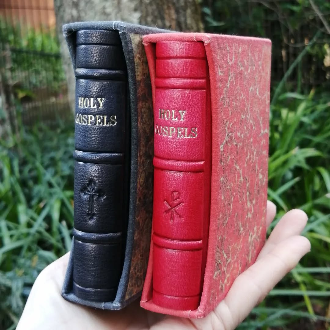 I bind handbound leather books that I sometimes sell here. These are usually biblical and early Christian texts that I have typeset and published myself under the Paradosis Press imprint. If you don't see any here, that is because they have sold out. I don't take commissions, but usually put a batch of books up for sale and announce the details the day before. Please follow me on Instagram or Facebook to be notified of updates.
