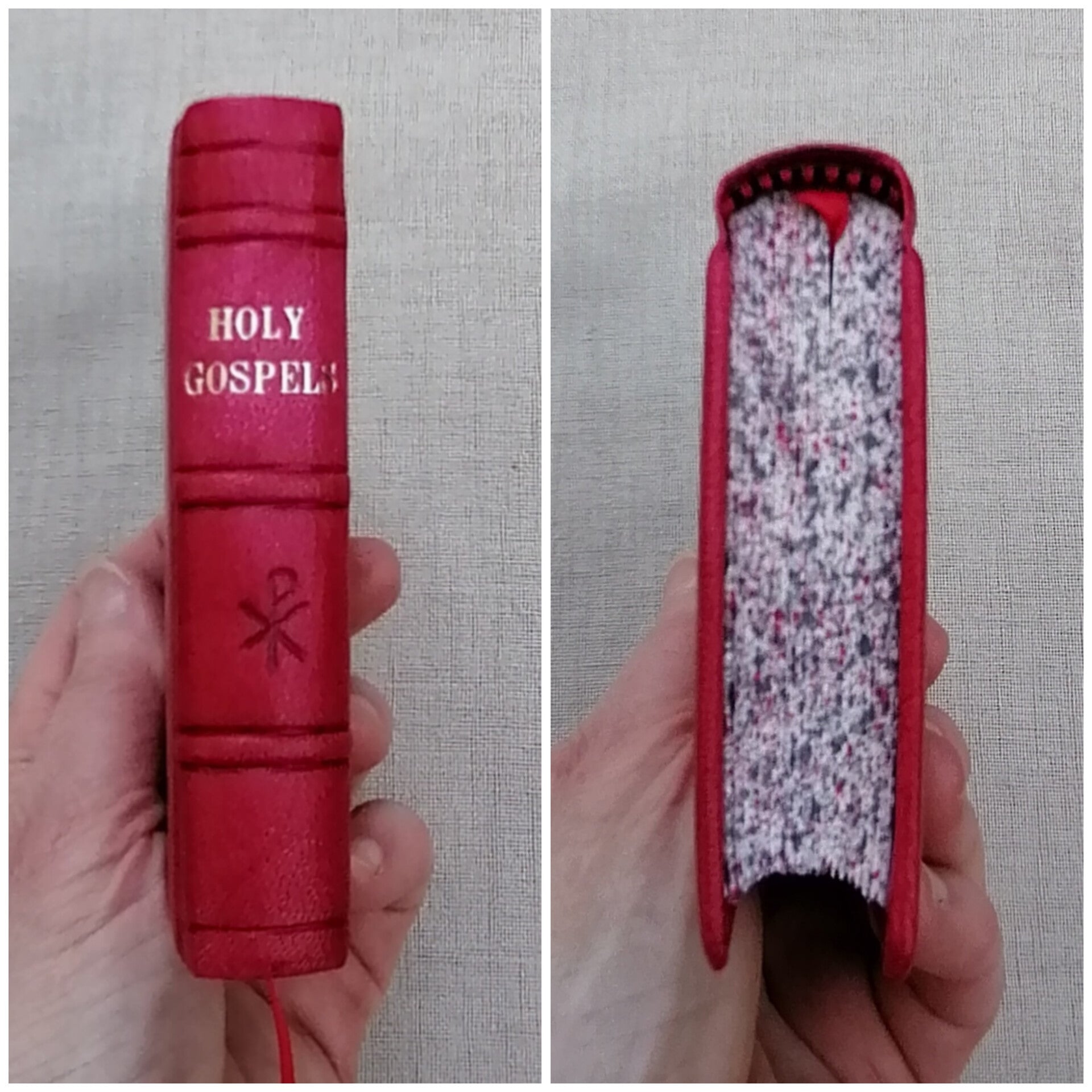 Leatherbound Book of Gospels, A-7 sized, Red Goatskin, Fr Lazarus Moore translation